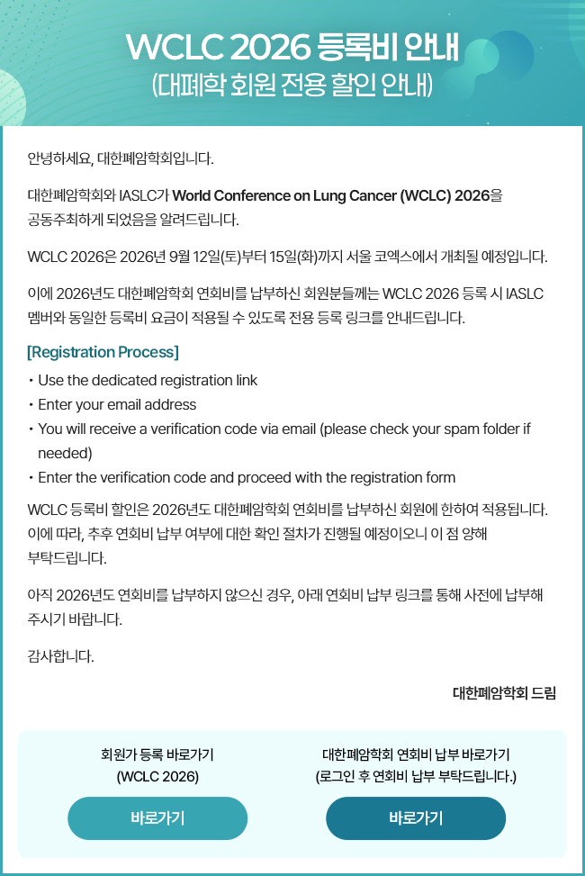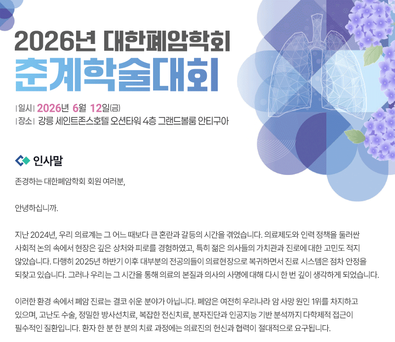 대한폐암학회의 주요 정보를 안내해드립니다.