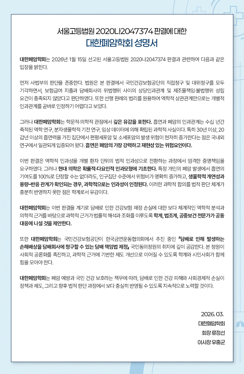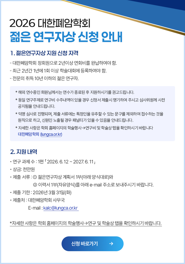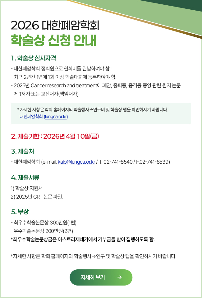 대한폐암학회의 주요 정보를 안내해드립니다.